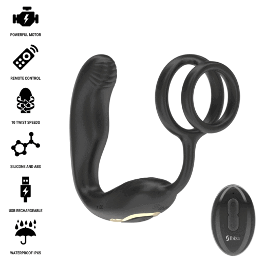 L'anello vibrante rotante con telecomando IBIZA Wiggle è l'accessorio ideale per chi cerca una stimolazione potente, versatile e facile da controllare. Con 10 modalità di rotazione, 10 frequenze di vibrazione e un design ergonomico che si adatta perfettamente al tuo corpo, questo anello ti offre un'esperienza di piacere completa. Grazie al telecomando potrai regolare ogni impostazione senza perdere un colpo, mentre il materiale sicuro per il corpo e la resistenza all'acqua lo rendono ancora più comodo e funzionale. Goditi una stimolazione profonda e personalizzata con questo innovativo anello vibrante e porta i tuoi momenti intimi a un livello superiore.