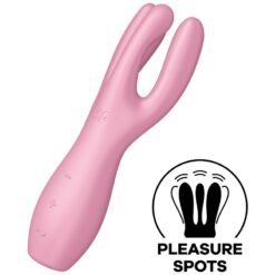 Satisfyer Threesome 3 ha tre bracci, un motore potente e un design innovativo. È un vibratore a contatto che stimola il clitoride e le labbra.